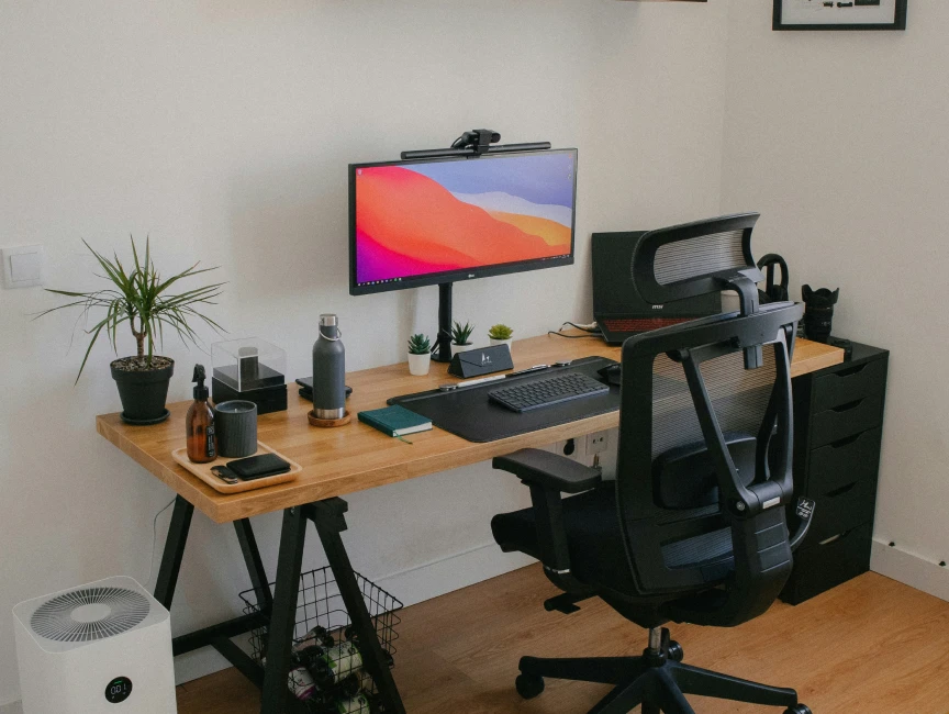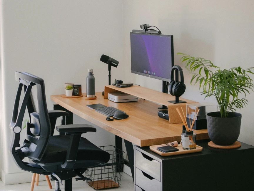 A sleek and functional Minimalist Oak Wood Computer Desk crafted from premium oak for a natural, modern look. Its clean lines and spacious surface provide the perfect workspace for productivity and style.